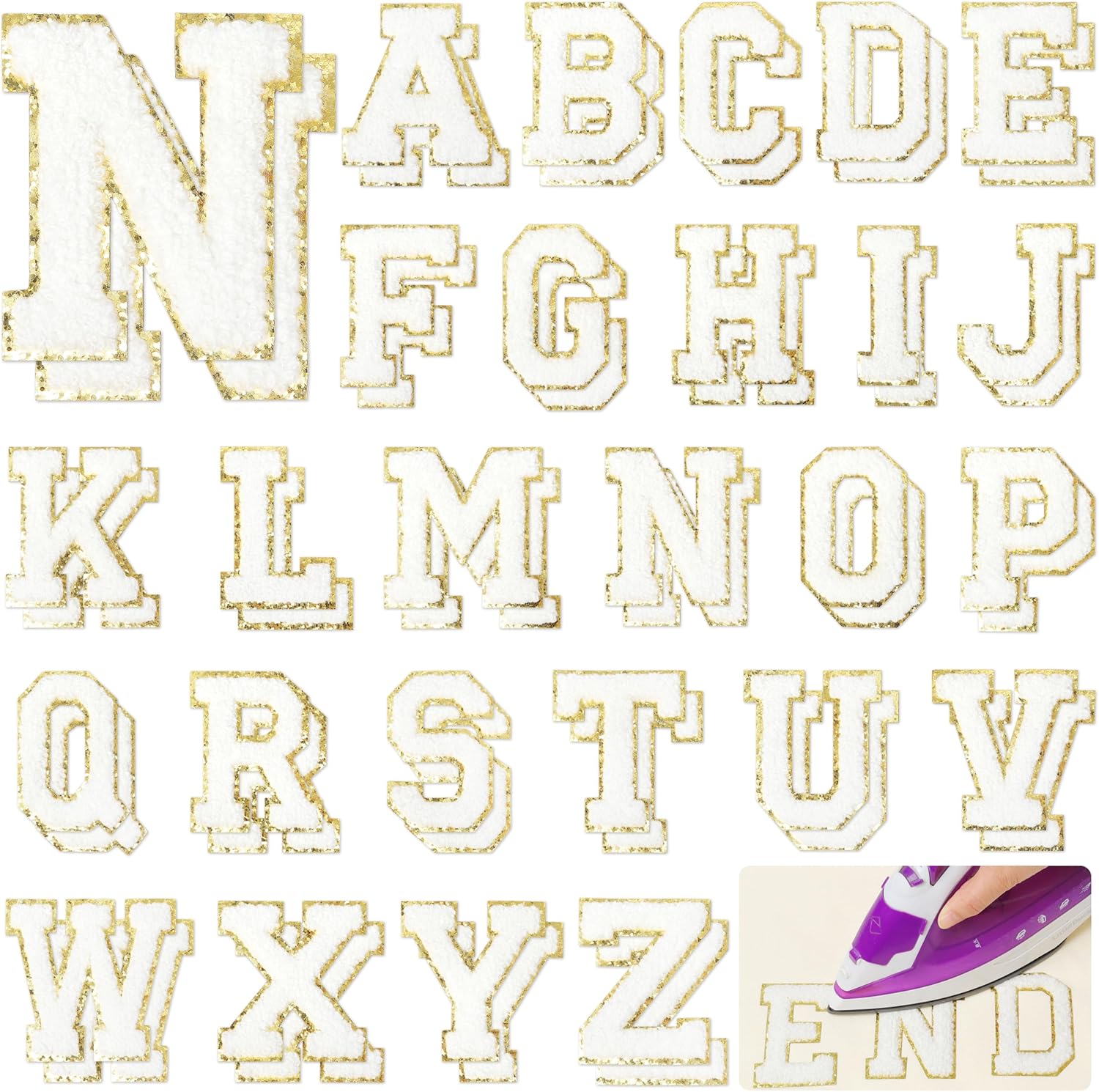 Small White/ Chunky Gold Glitter Letter Patches